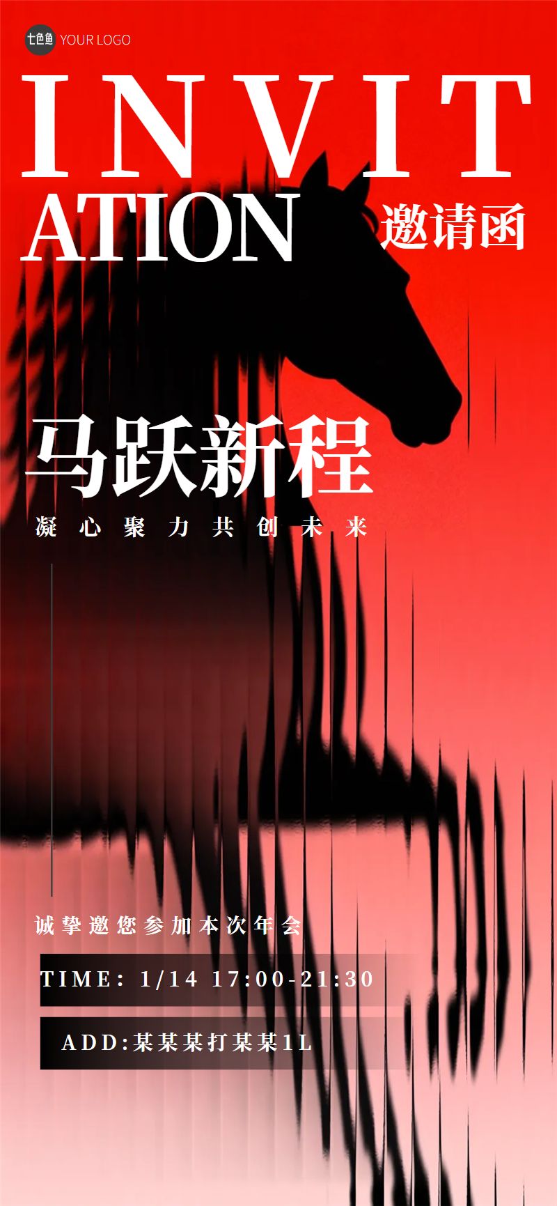 简约大气马年邀请函全屏海报是设计师 笨笨的作品,模板尺寸为720*1280px,属于?社交>?手机海报模板 ,模板图片素材均支持免费下载,在线就近下单印刷。操作简单易懂,会打字就会做设计,七色鱼界面友好上手快,可适用于多种场景。七色鱼拥有海量模板素材,30万+模板免费用,行业覆盖丰富,全部模板只需拖拉拽,轻松改。满足中小型企业、创业公司、自媒体、学生和个体经营者的自助平面设计需求,还可进行云端储存管理、分享协作、营销传播、在线下单印刷等。