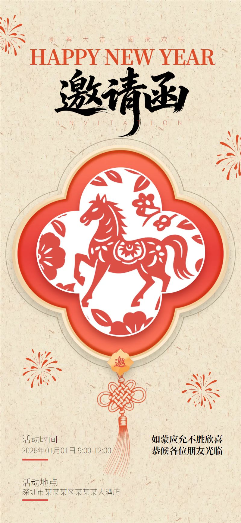 位置:首页>社交>手机海报>红色简约剪纸风年会邀请函马年海报