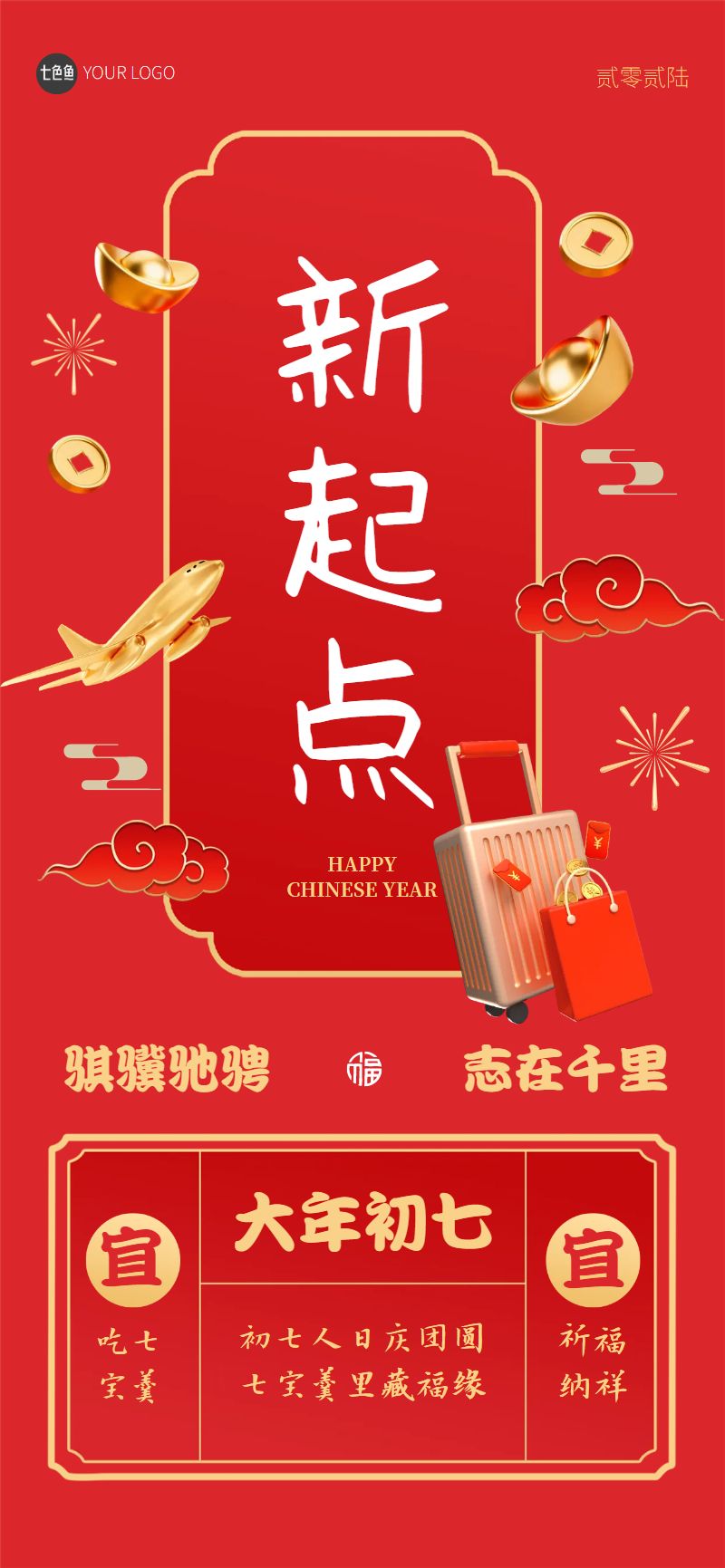 红色大气年俗大年初七全屏海报是设计师 笨笨的作品,模板尺寸为720*1280px,属于?社交>?手机海报模板 ,模板图片素材均支持免费下载,在线就近下单印刷。操作简单易懂,会打字就会做设计,七色鱼界面友好上手快,可适用于多种场景。七色鱼拥有海量模板素材,30万+模板免费用,行业覆盖丰富,全部模板只需拖拉拽,轻松改。满足中小型企业、创业公司、自媒体、学生和个体经营者的自助平面设计需求,还可进行云端储存管理、分享协作、营销传播、在线下单印刷等。