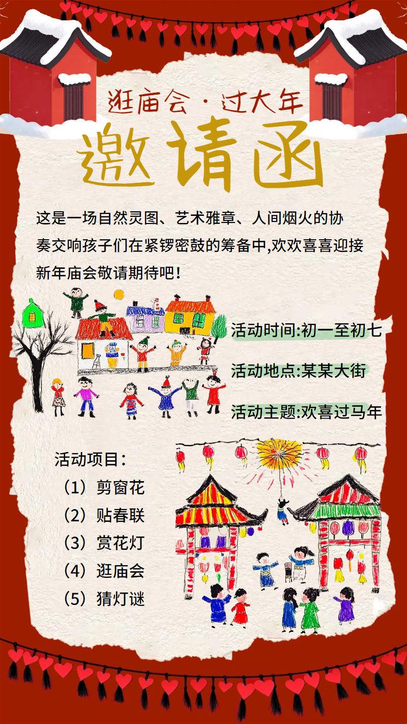 位置:首页>社交>手机海报>原创插画风庙会邀请函手机海报