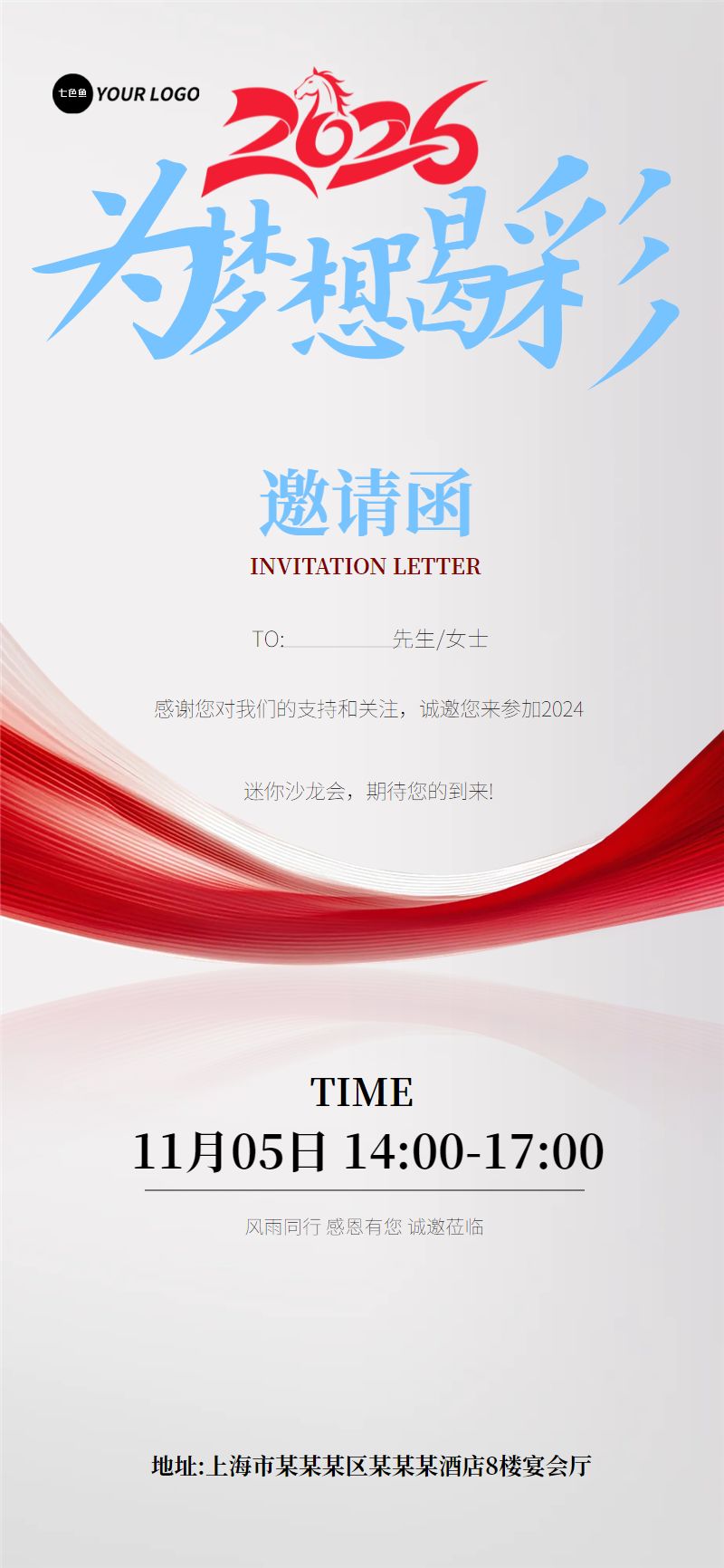 大气年会邀请函全屏海报是设计师 笨笨的作品,模板尺寸为720*1280px,属于?社交>?手机海报模板 ,模板图片素材均支持免费下载,在线就近下单印刷。操作简单易懂,会打字就会做设计,七色鱼界面友好上手快,可适用于多种场景。七色鱼拥有海量模板素材,30万+模板免费用,行业覆盖丰富,全部模板只需拖拉拽,轻松改。满足中小型企业、创业公司、自媒体、学生和个体经营者的自助平面设计需求,还可进行云端储存管理、分享协作、营销传播、在线下单印刷等。