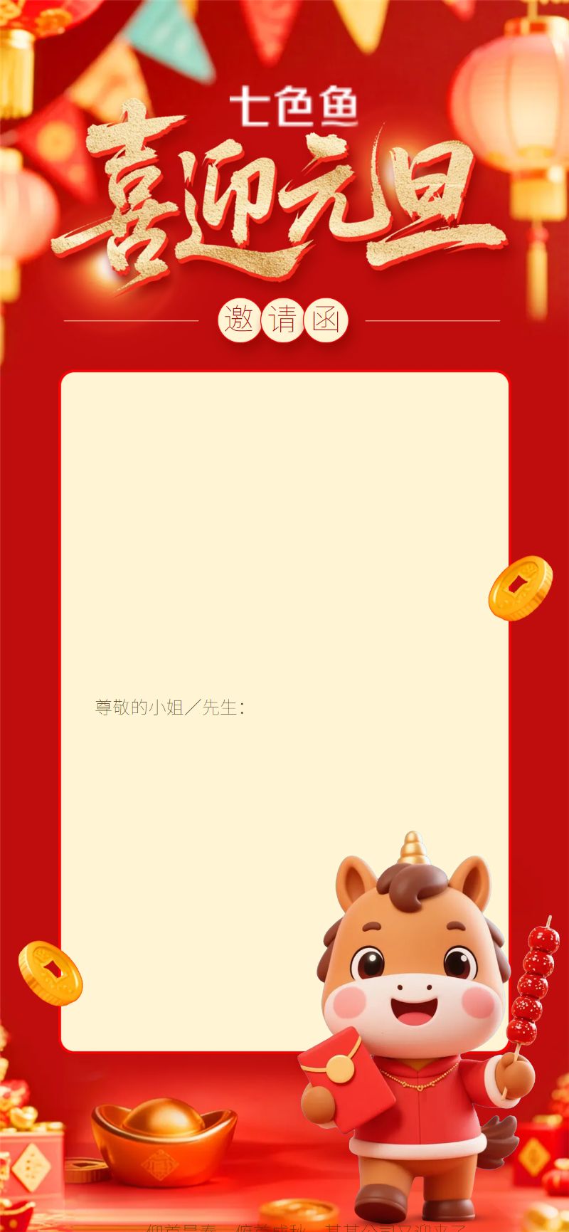 红色喜庆2026喜迎元旦邀请函是设计师 笨笨的作品,模板尺寸为720*1280px,属于?社交>?手机海报模板 ,模板图片素材均支持免费下载,在线就近下单印刷。操作简单易懂,会打字就会做设计,七色鱼界面友好上手快,可适用于多种场景。七色鱼拥有海量模板素材,30万+模板免费用,行业覆盖丰富,全部模板只需拖拉拽,轻松改。满足中小型企业、创业公司、自媒体、学生和个体经营者的自助平面设计需求,还可进行云端储存管理、分享协作、营销传播、在线下单印刷等。