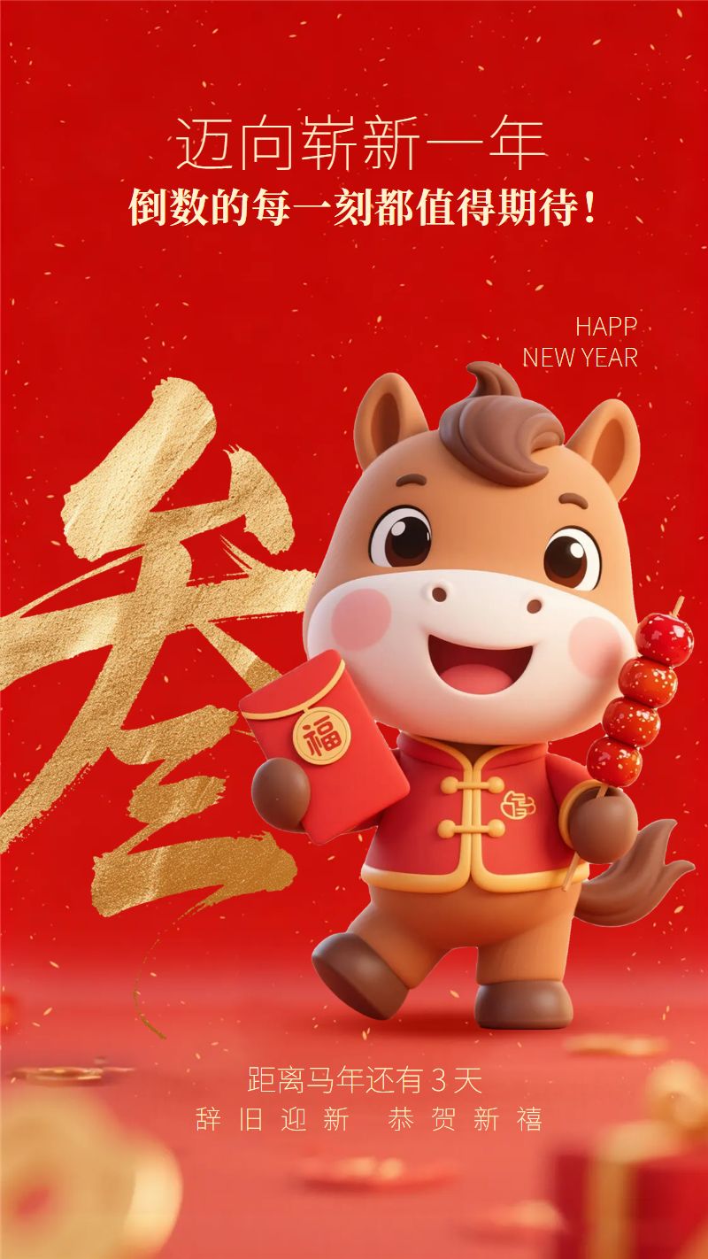 位置:首页>社交>手机海报>红色喜庆风元旦新年倒计时3天海报