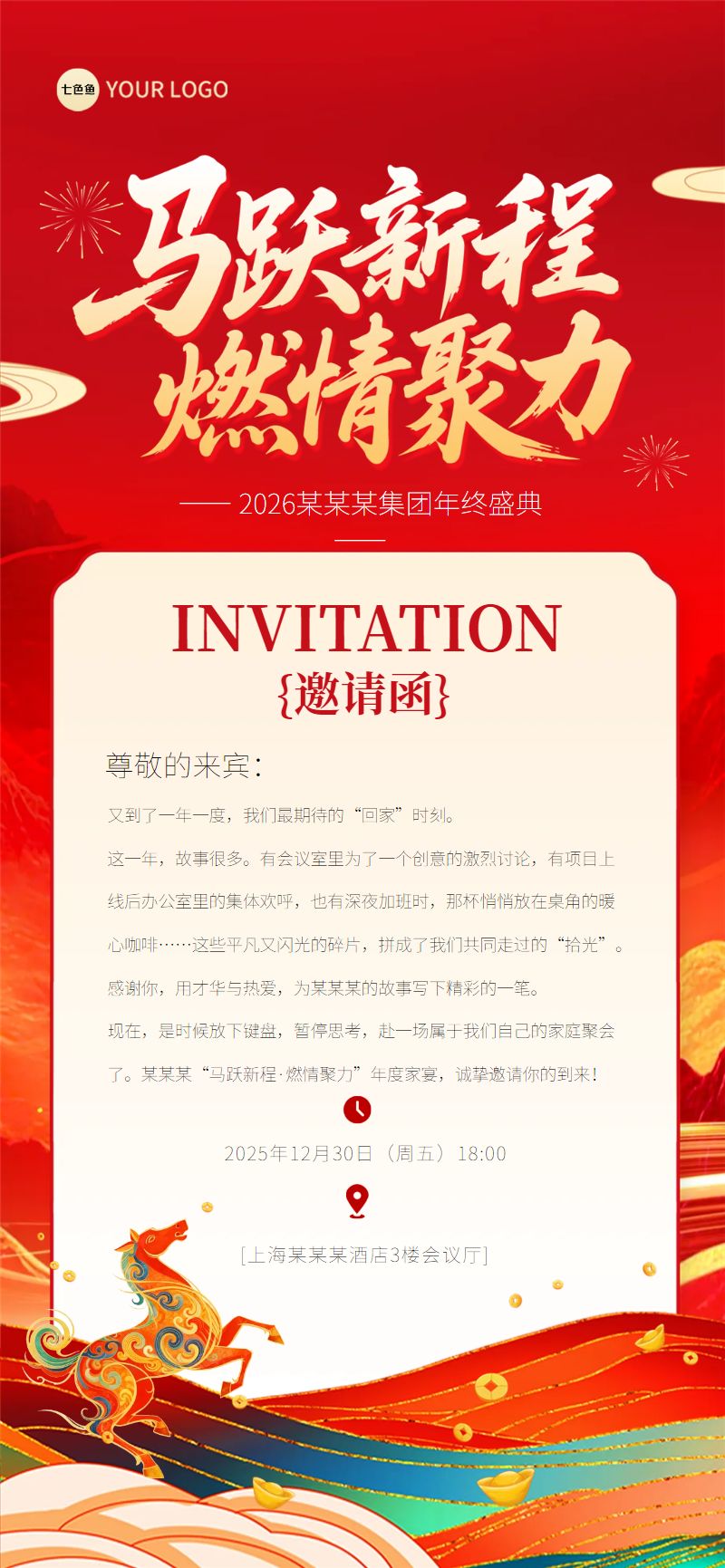 位置:首页>社交>手机海报>2026马年年会邀请函全屏海报